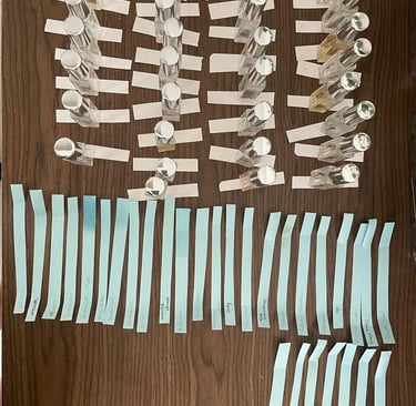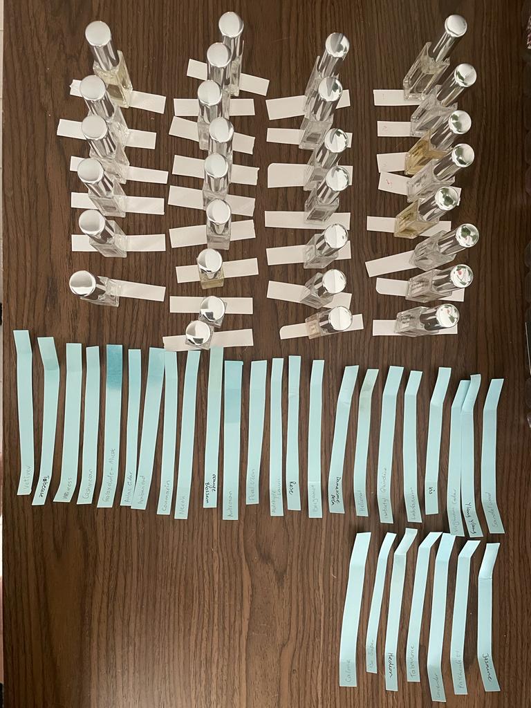 As part of my development in the sensory world, I have successfully completed a 2 month course into perfumery, where I have learned the basic 30+ aromas used to create perfumes.